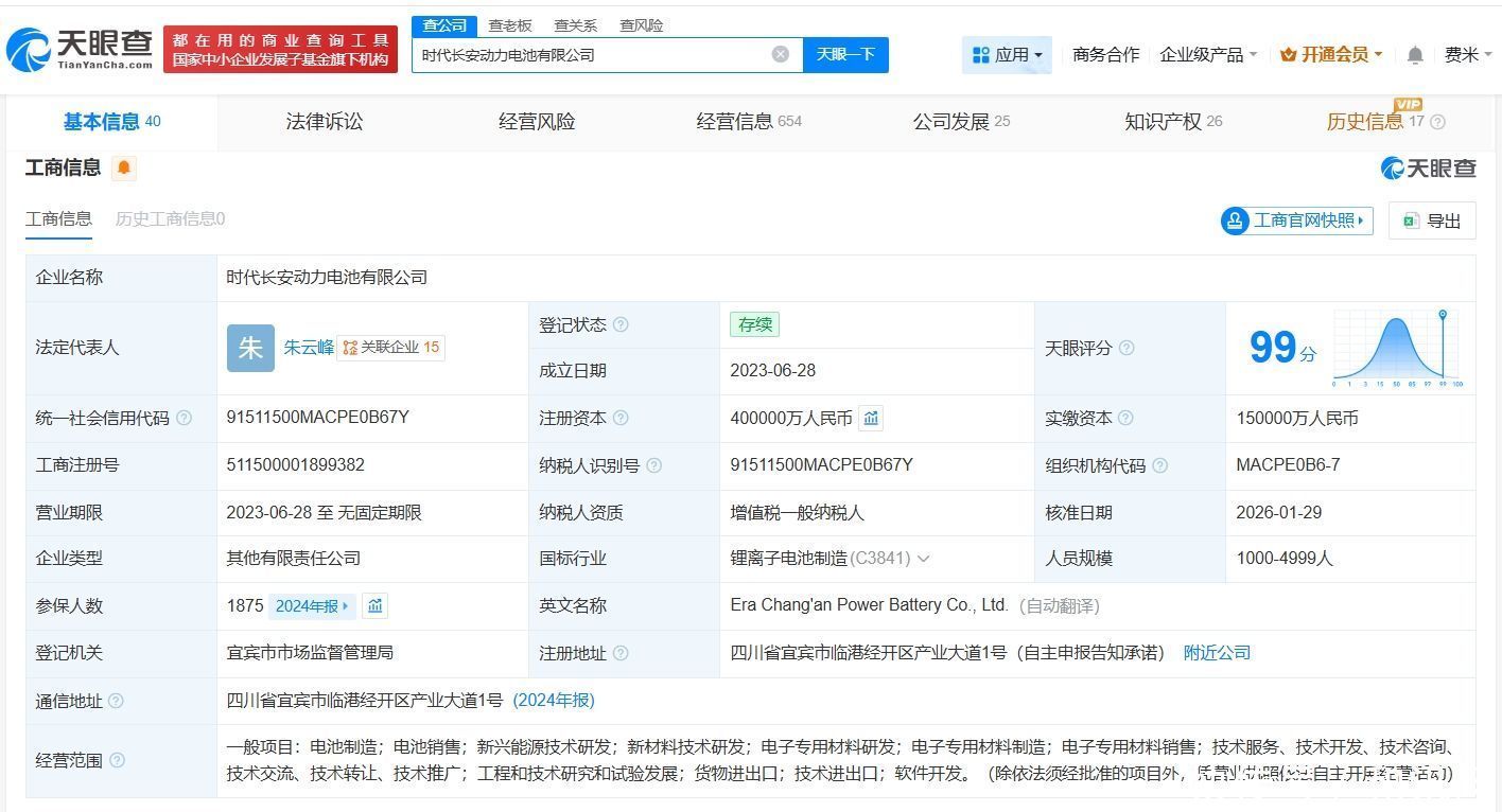 期间长安能源电板有限公司配置于2023年6月,法定代表东谈主为朱云峰,权术范围包括电板制造、电板销售、新兴能源技能研发、新材料技能研发等。鼓吹信息暴露,该公司由宁德期间(300750)、深蓝汽车科技有限公司、长安汽车(000625)共同捏股。