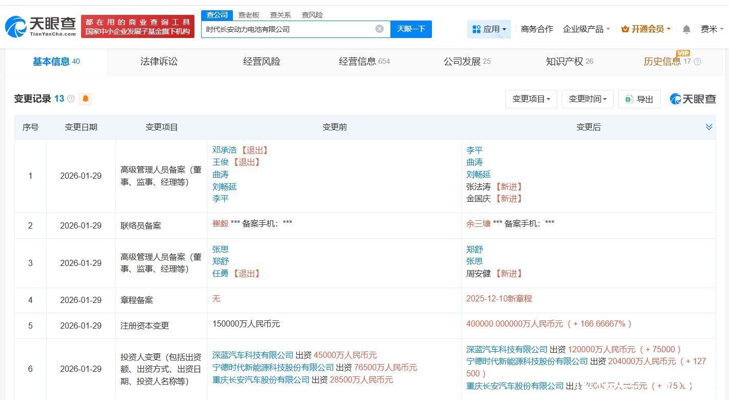 天眼查App暴露,近日,期间长安能源电板有限公司发生工商变更,注册本钱由15亿东谈主民币增至40亿东谈主民币天元证券门户_主流实盘配资平台-实盘交易模式分析,增幅约167%。